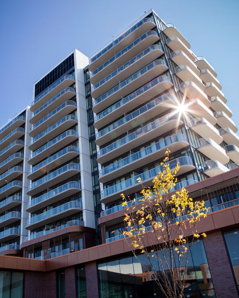 Defined by sleek modern architecture and vibrant urban energy, this development captures the spirit of contemporary city living within a dynamic mixed-use community. Its clean lines, open terraces, and integrated retail create a stylish hub in the heart of the Shops at Don Mills district.